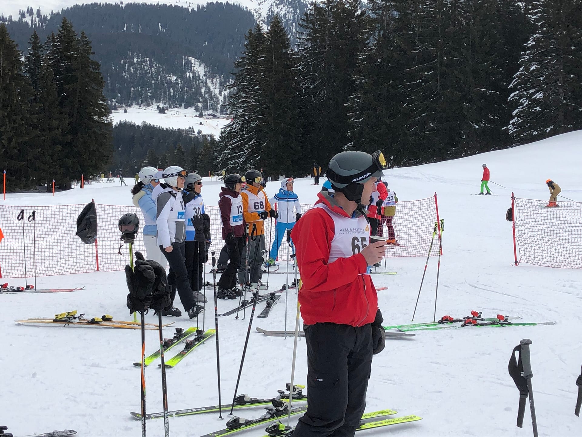 Mit den Organisatoren ging es schon kurz nach 7 Uhr zur Startnummernausgabe unten am Berg. Dort traf wir dann auch zum ersten Mal die Vertreterinnen und Vertreter der anderen Kantone. Thurgauer, Zücher, Bündner, Appenzeller aber auch Tessiner und Schwyzer Politikerinnen und Politiker haben bei der 59. Ausgabe des Ostschweizerparlamentarier-Skirennens teilgenommen. Mit den Ehemaligen und den Aktiven waren insgesamt 115 Personen am Start.