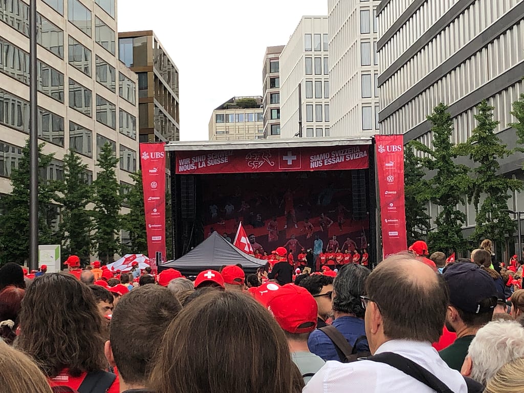 Kaum wieder in Schaffhausen angekommen, ging es am selben Tag weiter nach Zürich, wo die Schweizer Nationalmannschaft ein Tag nach dem EM-Aus von einer frenetisch jubelnden Masse empfangen wurde. Ich bin zwar schlecht im Schätzen, aber ich würde sagen, die Anzahl Fans bewegte sich im mittleren vierstelligen Bereich.