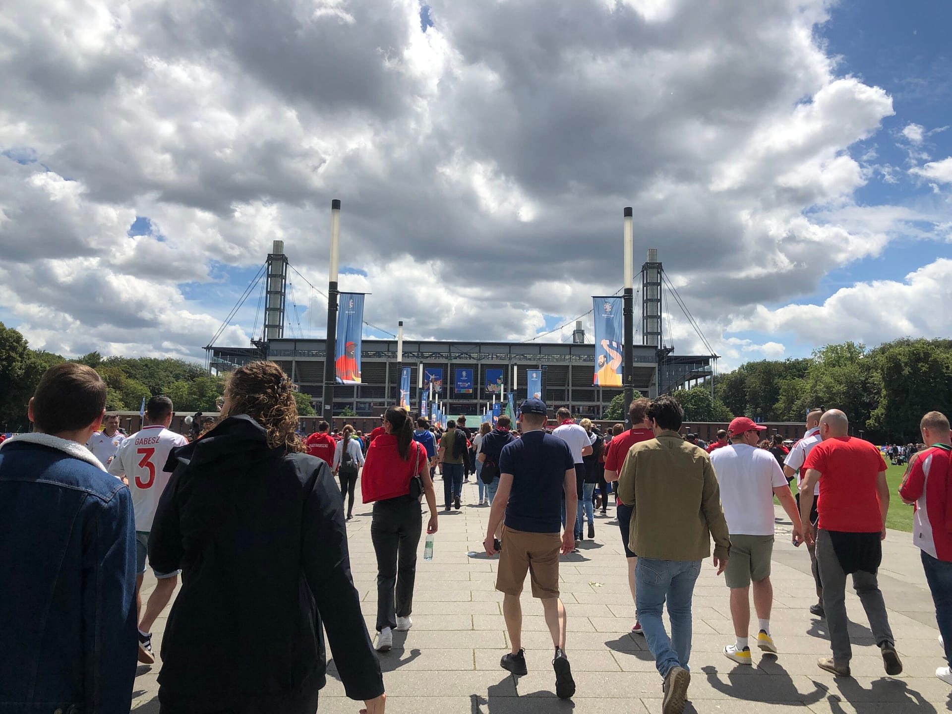 Beim Stadion angekommen konnten die Vertreter der Presse einen separaten Eingang benutzen, um den langen Warteschlangen der anstehenden Fans zu entgehen. Dafür kam Flughafen-Feeling auf, da man noch durch zwei Sicherheitsschleusen musste und auch das Gepäck auf das Genaueste durchleuchtet wurde. Ohne den zum Beginn des Turniers erhaltenen Badge kam man erst gar nicht rein. Nach der Sicherheitskontrolle wurde man dann wieder Teil der Fanmassen, was ein schnelles Vorwärtskommen unmöglich machte.