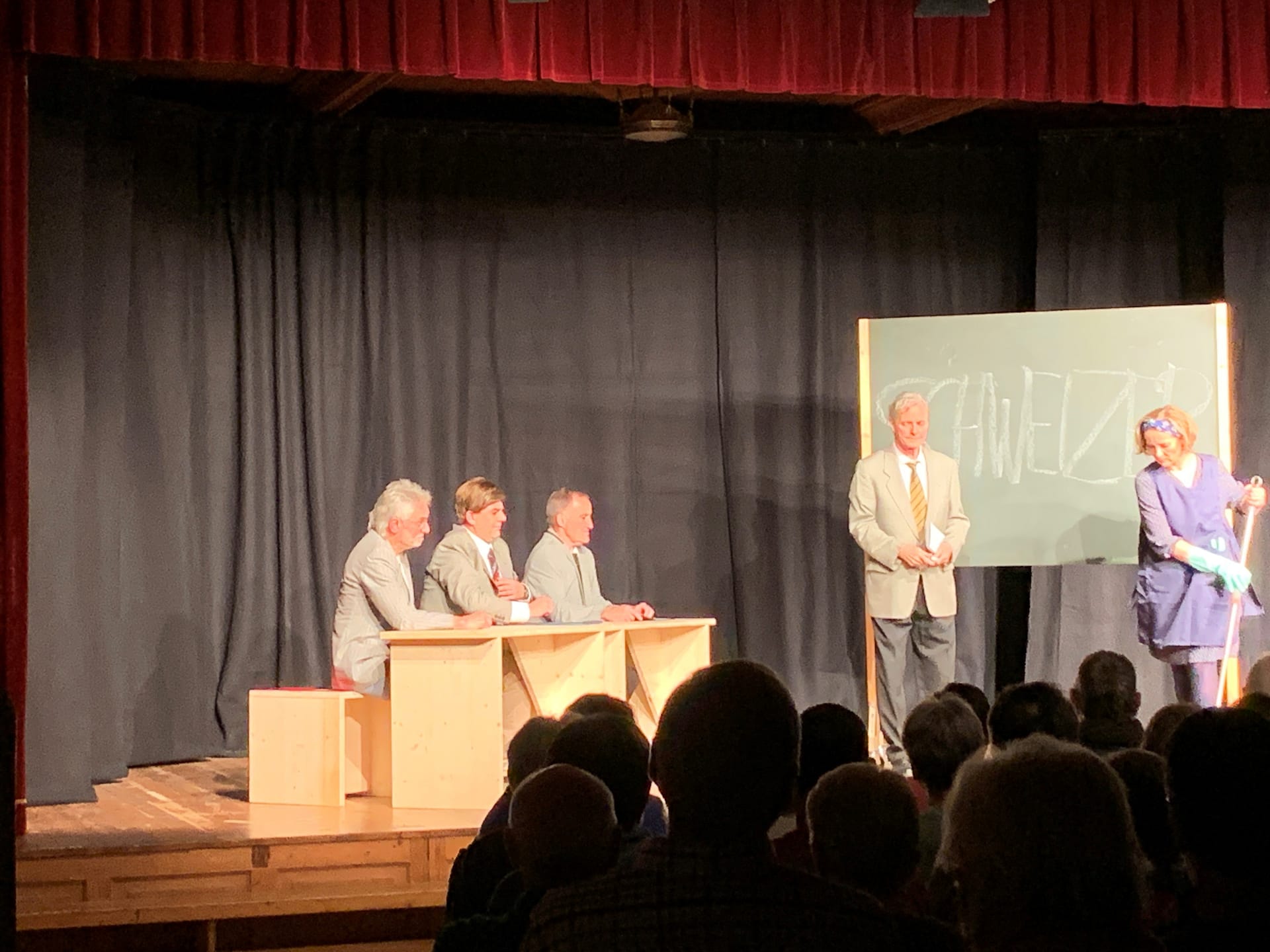 Das Theater Hallau hat dieses Wochenende erfolgreich die Premiere ihres neusten Stücks gefeiert. Über 140 Personen waren bei der Uraufführung der Bühnenfassung des Schweizer Filmklassikers „Die Schweizermacher“ im Hallauer Gemeindehaus. Für Yves Fischer, der die Hauptrolle des Beamtenlehrlings Moritz Fischer übernimmt, war es ein gelungener Einstand. Das Stück „Die Schweizermacher“ nimmt die Einbürgerungsanforderungen komödiantisch auf die Schippe. Noch bis am 18. Januar gibt es Vorstellungen des Theater Hallau. Einblicke in die Aufführung findet ihr im Audio-Beitrag.